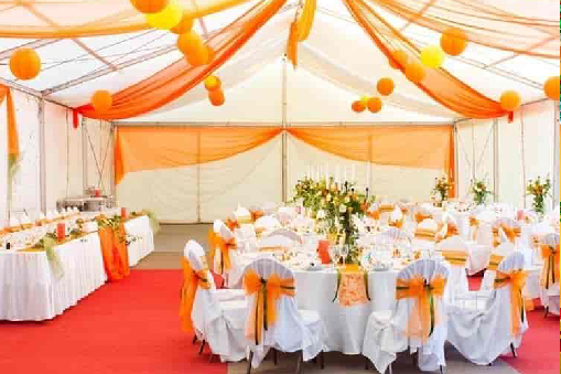 అతిథులు సౌకర్యంగా ఉండేలా పందిరి & కూర్చోవడానికి పూర్తి ఏర్పాట్లు.